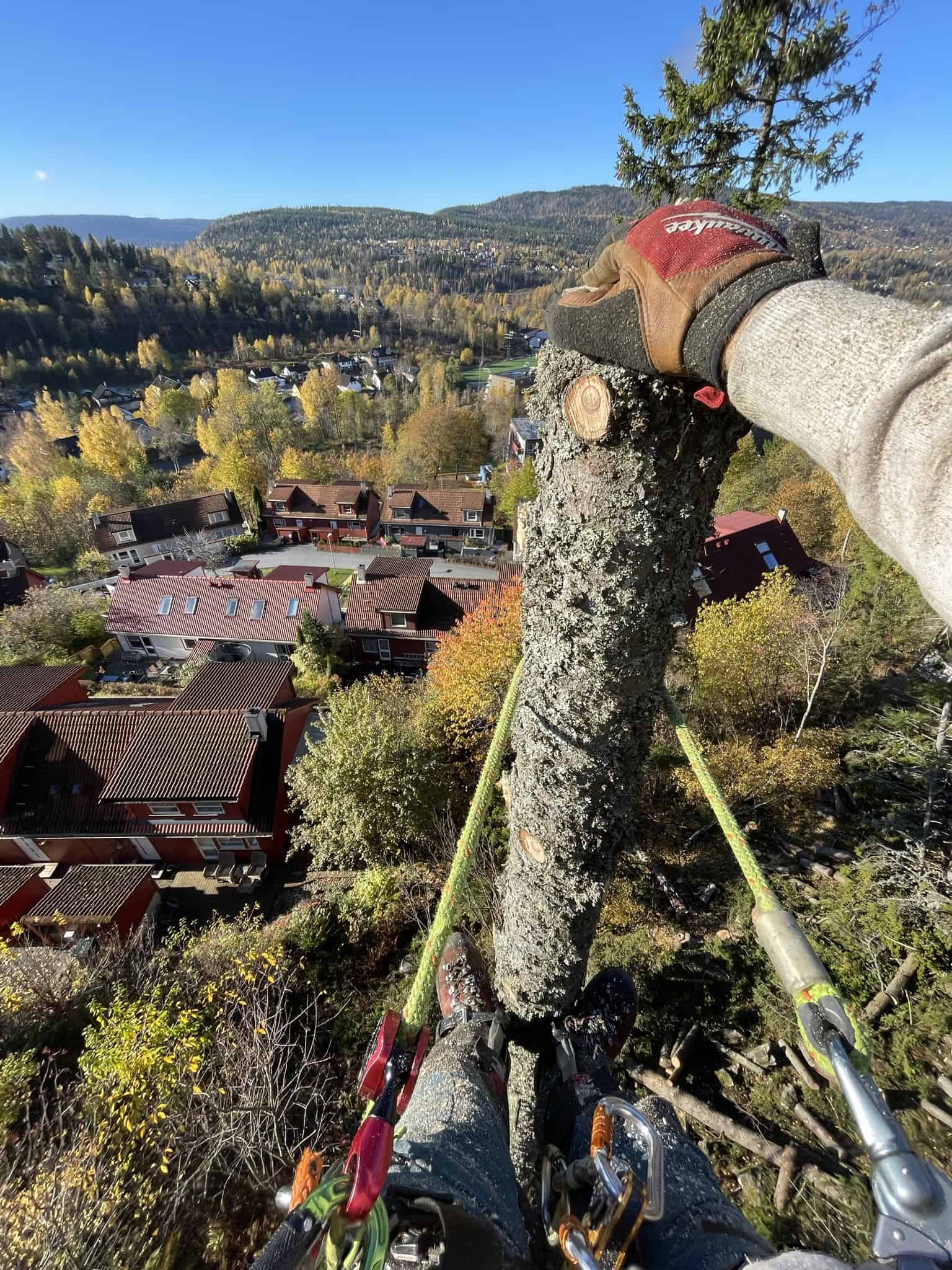 Våre ansatte har lang erfaring med krevende trefellingsprosjekter og bruker moderne metoder og utstyr tilpasset oppgaven.